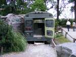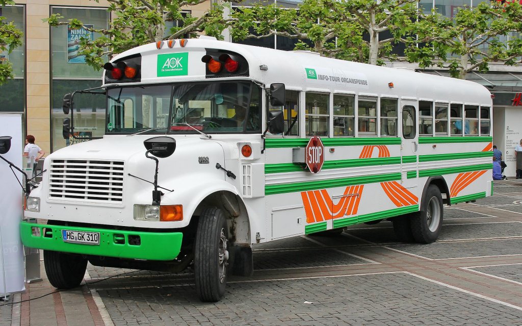 Alter Thomas build Buses School Bus auf International S-Series Fahrgestell. Als Eigentümer trug der Bus zum Zeitpunkt der Aufnahme (17.September 2011 bei den Meramec Caverns) "Cavern Canoe and Raft" aus Stanton / Missouri.