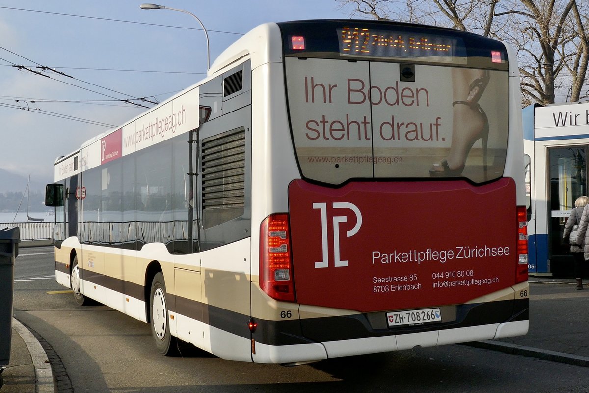 Heckansicht AZZK MB C2 Nr. 66 am 30.12.19 beim Bahnhof Tiefenbrunnen.