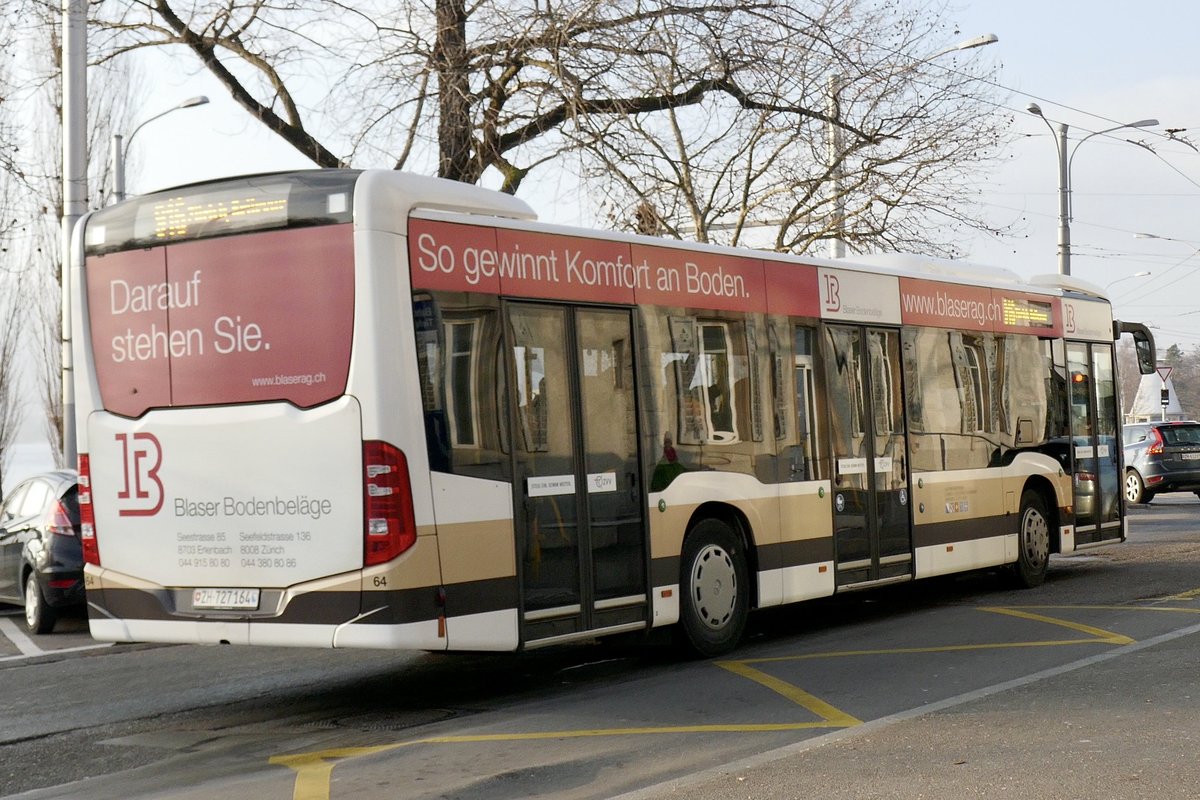 Heckansicht des MB C2 Nr. 64 der am 30.12.19 auf den Bahnhofplatz Tiefenbrunnen einfährt.
