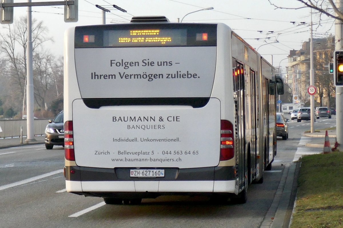 Citaro Facelift Nr. 60 des AZZK unterwegs zum Bellevue um einzusetzen, am 30.12.19 beim Bahnhof Tiefenbrunnen.