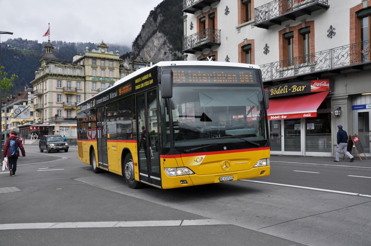 Mercedes Citaro der Post auf der Linie 104 kurz vor dem Bahnhof Interlaken West. Die Aufnahme stammt vom 16.04.2014.