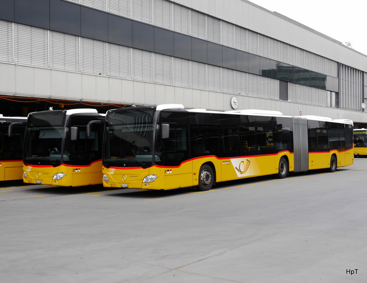 Postauto - Mercedes Citaro BE 734633 in Bern bei den Postautohaltestellen auf dem Dach des Bahnhof Bern am 11.10.2015