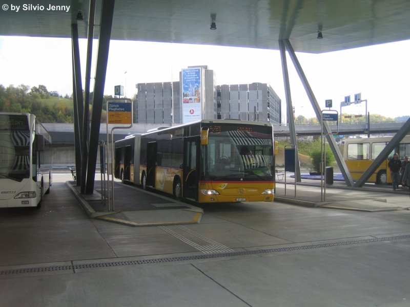 Mercedes CitaroII G Nr. 241 von PU Autobetrieb Stadel-Neerach am 17.10.08 beim Flughafen Zürich-Kloten. Im Gegensatz zu vielen anderen Postautos haben die aus Stadel glebe Spiegel, um darauf das Postautologo anbringen zu können.