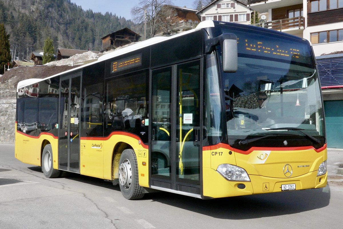 Der MB C2 K vom PU TPC, Aigle am 23.2.19 bei der Abfahrt am Bahnhof Le Sépey.