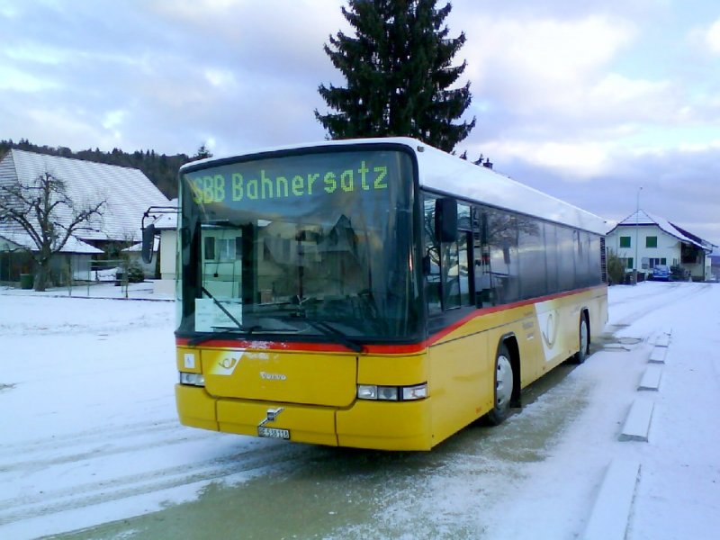 Postauto - Volvo-Hess BE 538118 unterwegs als Bahnersatz für die asm zwischen Brüttelen und Ins am 23.11.2008