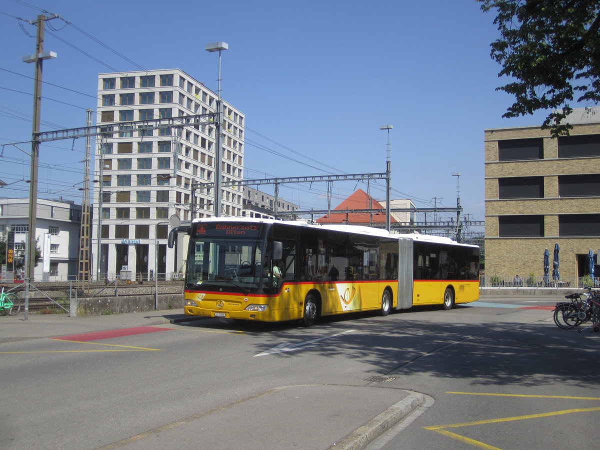 Postauto/PU Wyss Nr. 52 ''Wolfwil'' (Mercedes Citaro Facelift O530G) am 16.5.2020 als Bahnersatz für die S23, die aufgrund Bauarbeiten in Aarau zwischen Othmarsingen und Olten ausfiel, beim Bhf. Lenzburg. Planmässig sind in Lenzburg keine Postautos zu sehen.
