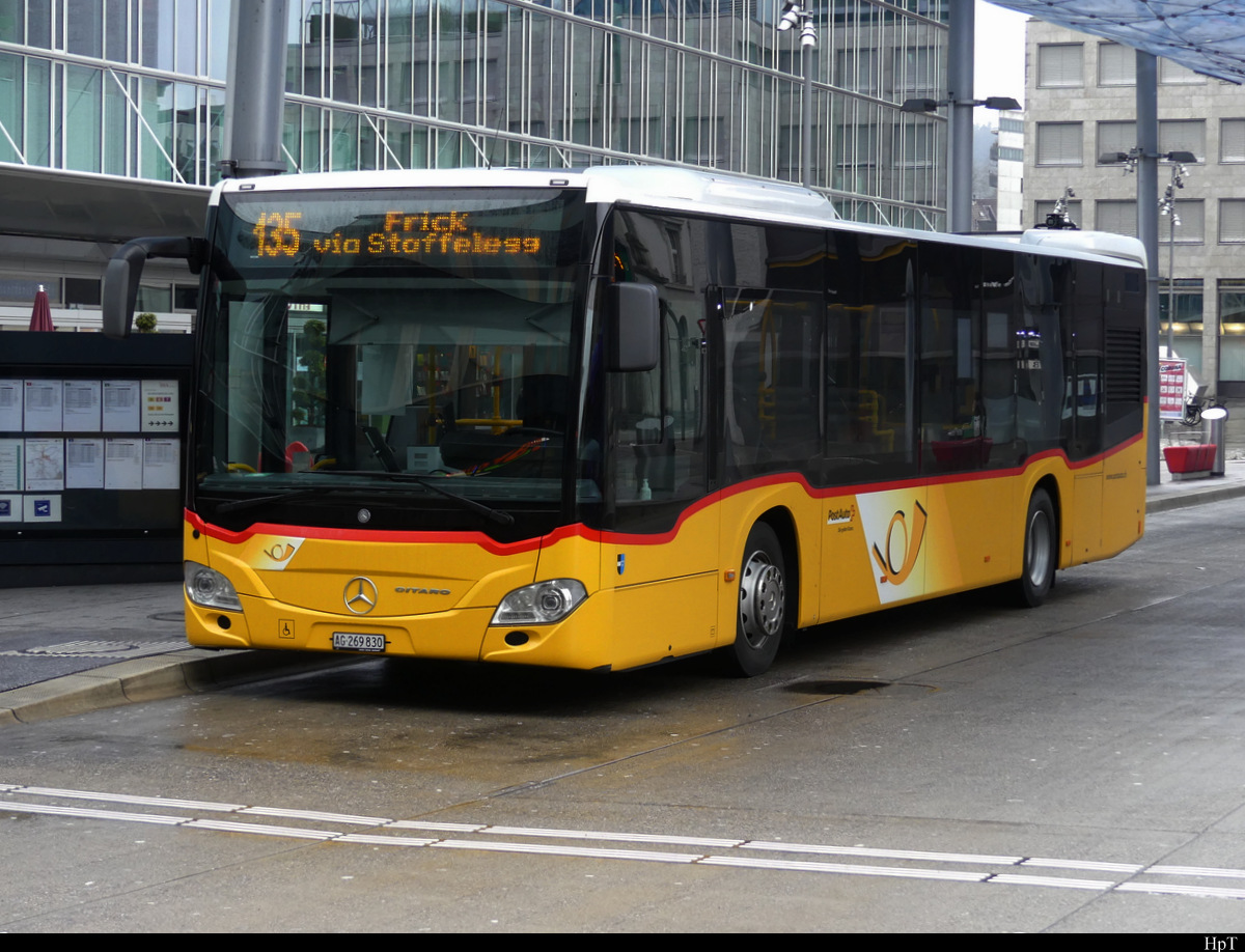Postauto - Mercedes Citaro AG 269830 bei den Bushaltestellen vor dem Bahnhof in Aarau am 31.01.2021