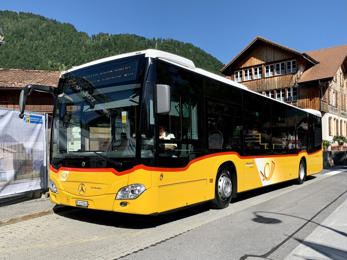 Neuer (gestern abgelieferter) MB C2 hybrid '11687' "BE 610 543" PostAuto Regie Interlaken am 10.7.21 im Dorf Wilderswil.