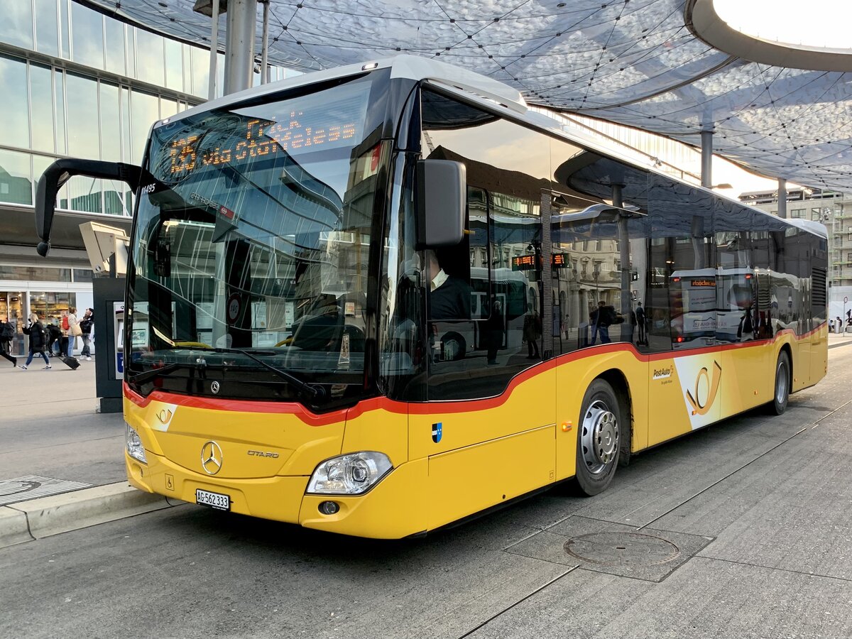MB C2 hybrid '11495' der PostAuto Regie Aarau am 18.10.21 beim Bahnhof Aarau.