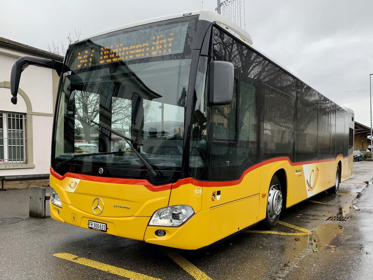 MB C2 hybrid Nr. 125 '11678' "FR 300 631" vom PU Wieland Bus, Murten am 28.12.21 beim Bahnhof Murten.