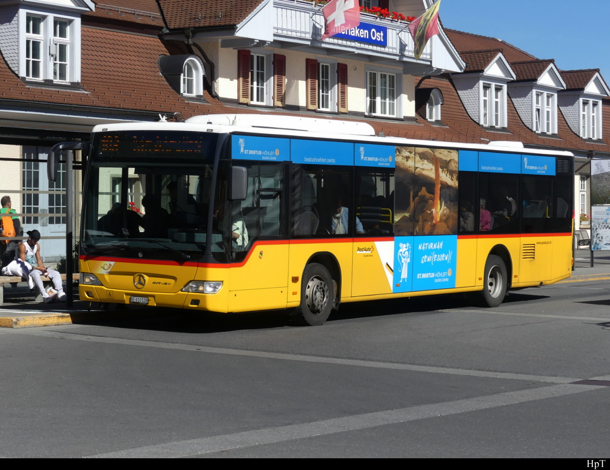 Postauto - Mercedes Citaro BE 610539 vor dem Bahnhof in Interlaken Ost am 05.10.2022