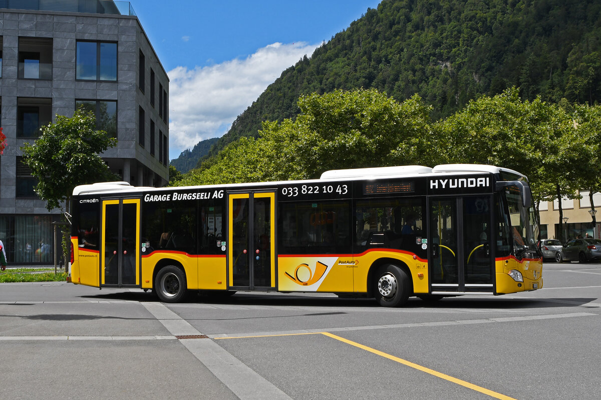 Mercedes Citaro der Post, auf der Linie 102, fährt am 03.08.2023 zur Haltestelle beim Bahnhof Interlaken Ost.