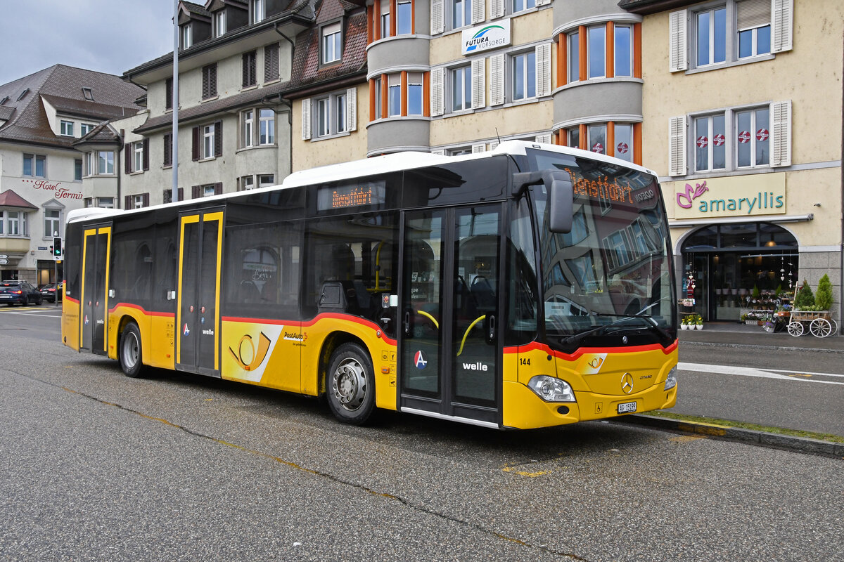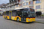 Mercedes Citaro 144 der Post wartet am 12.02.2024 als Dienstfahrt beim Bahnhof Brugg.
