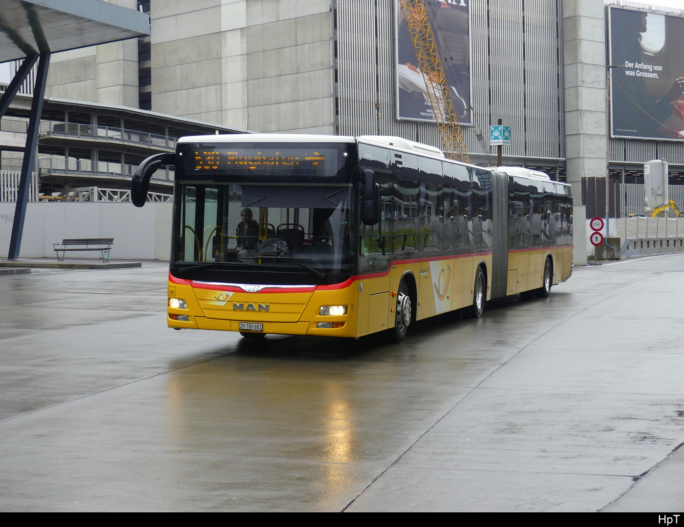 Postauto - MAN Lion`s City ZH 780683 bei der Zufahrt zu den Bushaltestellen beim Flughafen Zürich am 2024.05.07