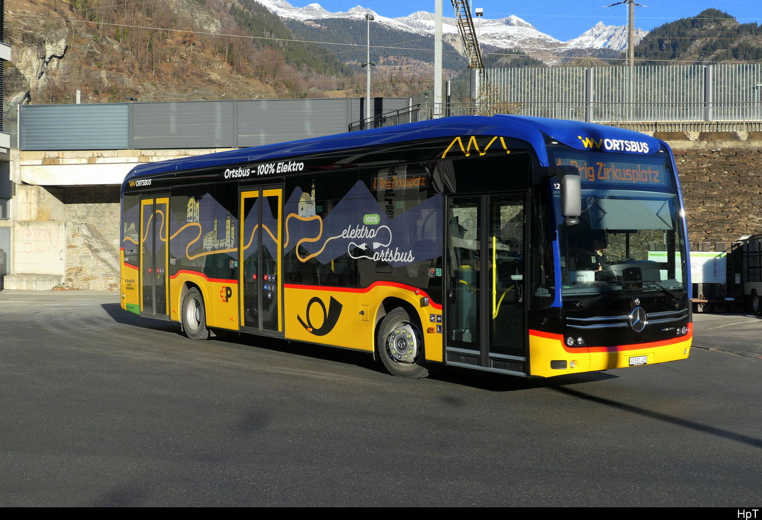 Ortsbus Brig / Postauto - Mercedes e Citaro VS 581437 unterwegs vor dem Bahnhof in Brig am 29.12.2025