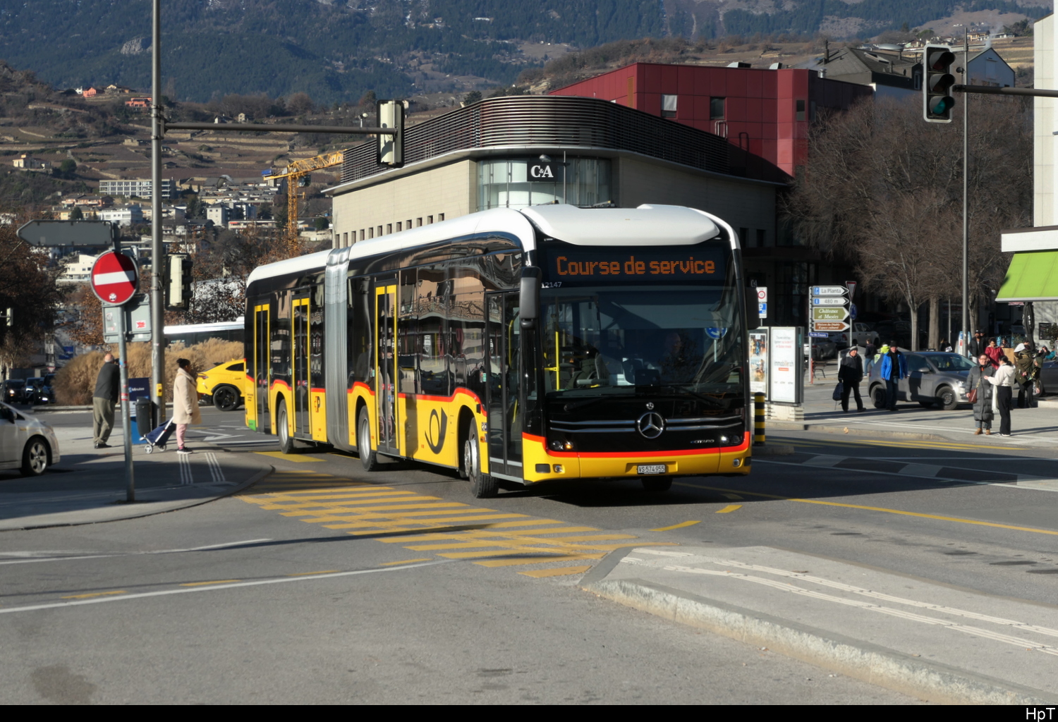 Postauto - Mercedes e Citaro VS 574955 bei der Zufahrt zu den Bushaltestellen vor dem Bahnhof in Sion am 29.12.2025