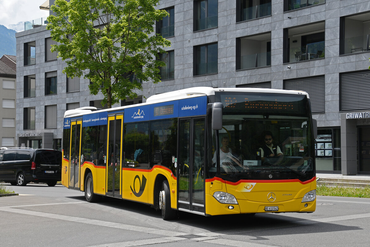 Mercedes Citaro der Post, auf der Linie 102, fährt am 27.06.2025 zur Haltestelle beim Bahnhof Interlaken Ost.
