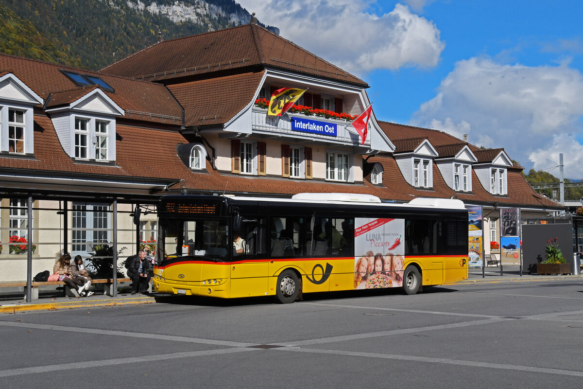 Mercedes eCitaro der Post, auf der Linie 102, wartet am 27.06.2025 an der Haltestelle beim Bahnhof Interlaken Ost.