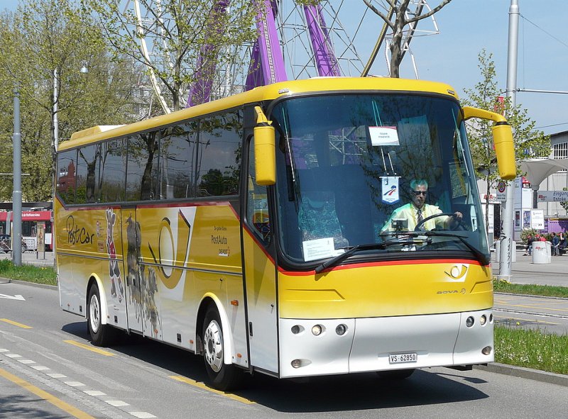 Postauto - BOVA VDL FUTURA VS 62850 unterwegs während der Hockey WM 2009 in Bern / Kloten als Team Bus der Französischen Nationalmanschaft, Unterwegs vor dem Eisstadion in Bern am 03.05.2009