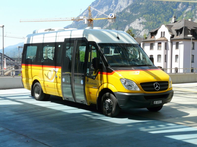 Postauto - Mercedes Sprinter City Gr 65917 bei den Postautohaltestellen über dem Bahnhof von Chur am 07.05.2009