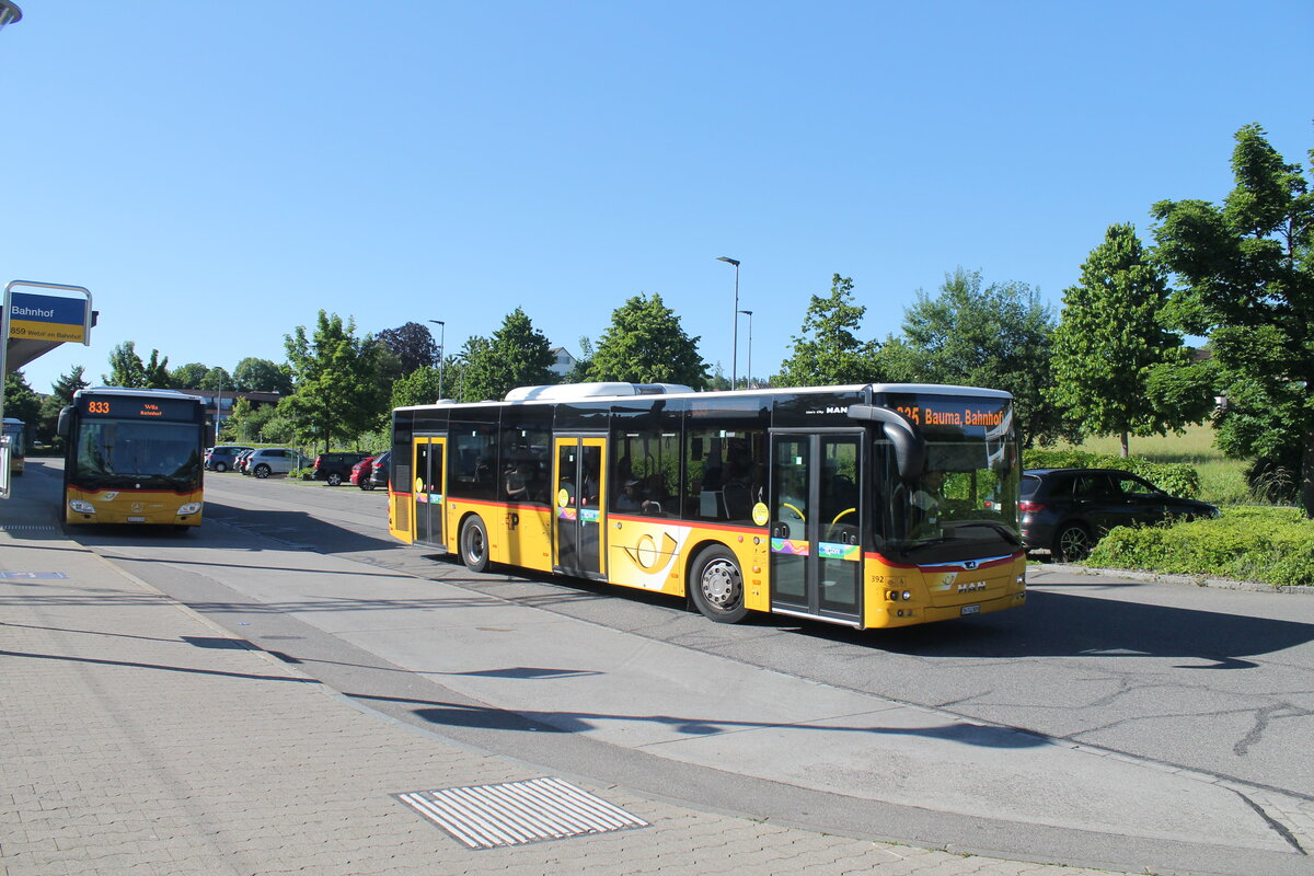 Mercedes Citaro der Post, auf der Linie 67, verlässt am 13.10.2025 die Haltestelle beim Bahnhof Dornach.