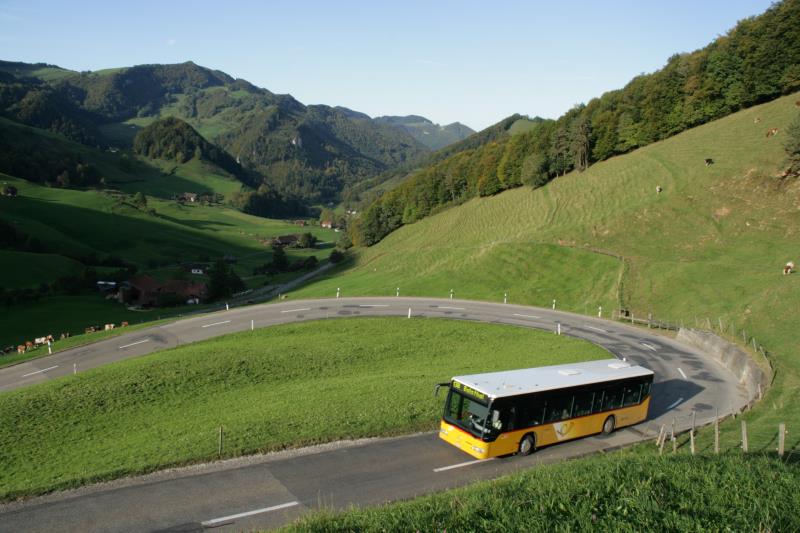 Mercedes Postauto am Passwang auf dem Kurs Zwingen SBB - Balsthal; 03.10.2010