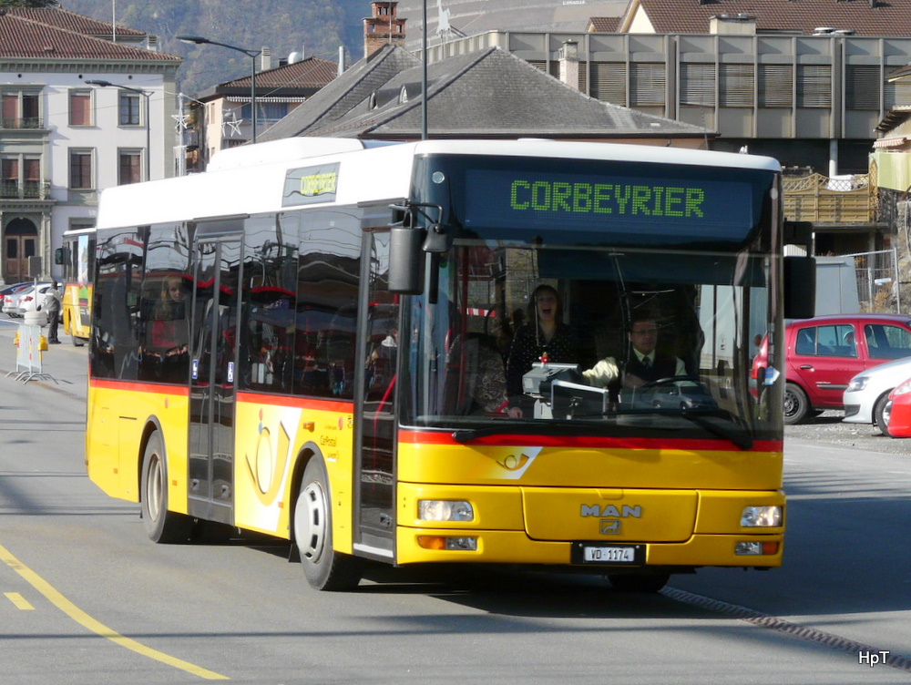 Postauto - MAN  VD 1174 unterwegs in Aigle am 18.03.2011