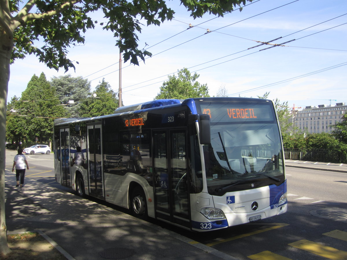 tl Nr. 323 (Mercedes Citaro C2 O530K) am 1.8.2019 in Lausanne, Montbenon