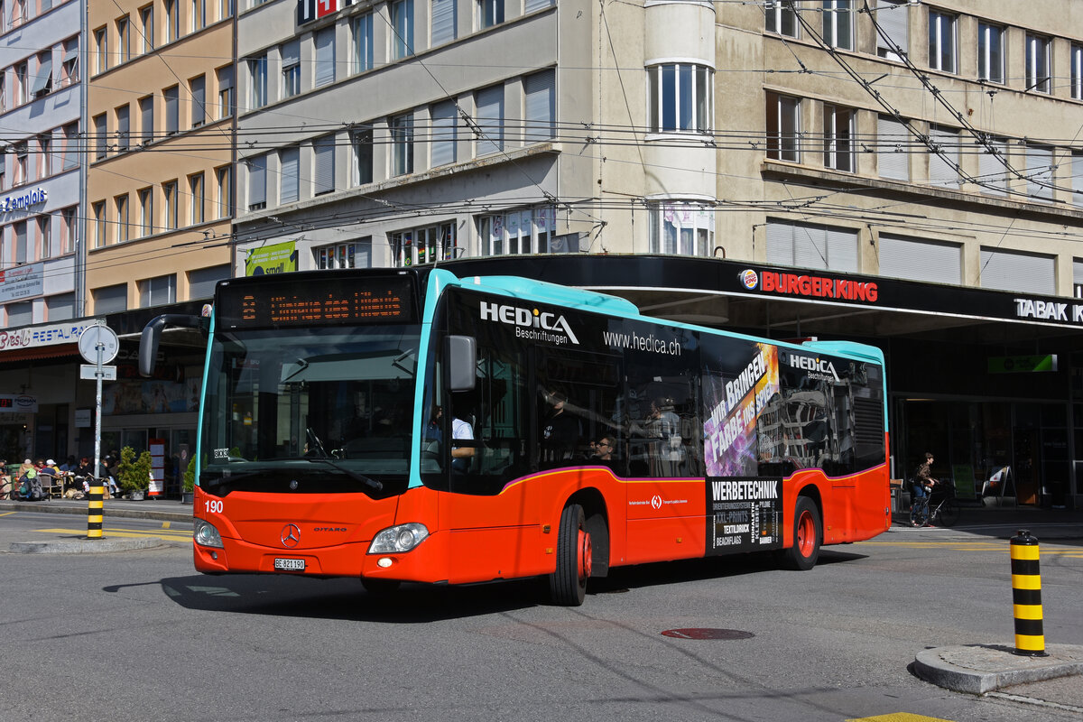 Mercedes Citaro 190, auf der Linie 8, fährt zur Haltestelle beim Bahnhof Biel.