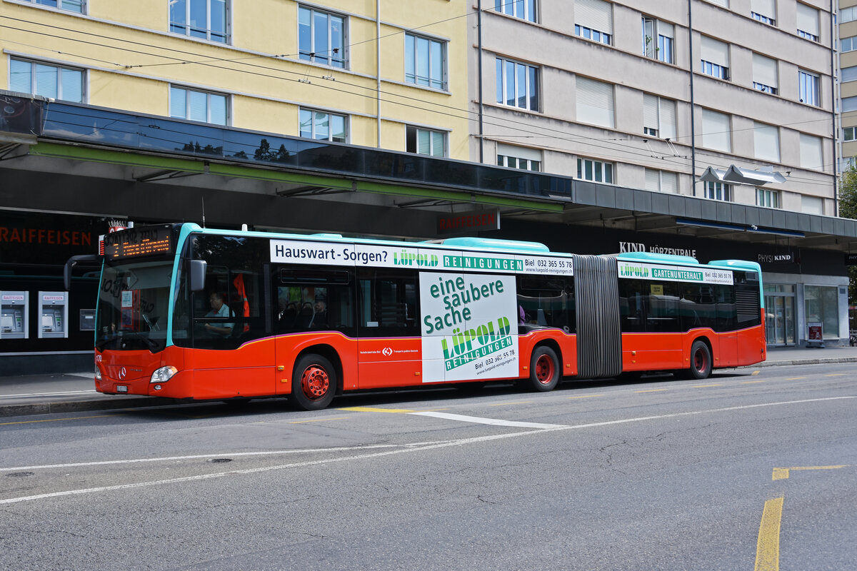 Mercedes Citaro 170, auf der Linie 2, bedient am 09.09.2022 die Haltestelle beim Bahnhof Biel.