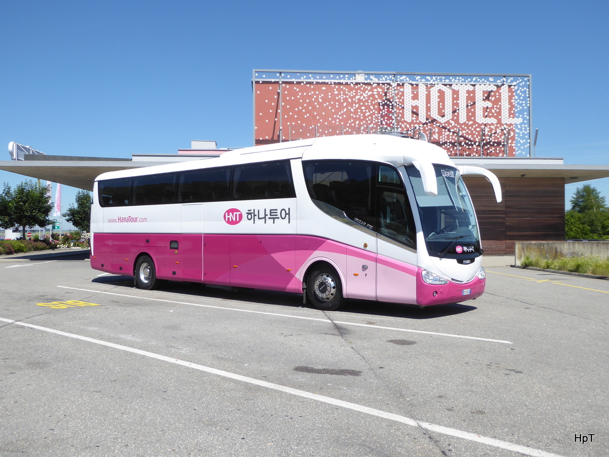 Reisebus - Scania Irizar EM auf dem Autobahnparkplatz in Estavayer le Lac am 11.06.2017