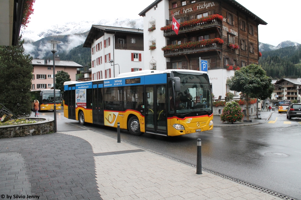 Postauto/Regie Prättigau GR 168 859 (Mercedes Citaro C2 O530) am 12.9.2017 in Klosters, Vereinapark. Im Beschaffungskatalog 2016/2017 ist in der Kategorie ''Stadtbus 12m'' der Citaro C2 wieder vorhanden. Stattdessen werden in diesem Segment vorläufig keine Solaris mehr beschafft.