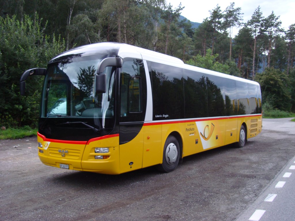 Postauto Iveco Crossway 10.8m in Andeer, Fravi Bogen. Linie 541 nach Thusis. (GR 163 713)