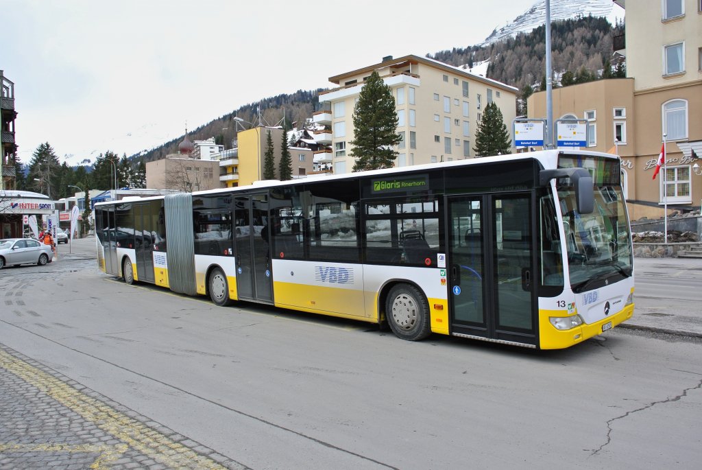 VBD Citaro II G Nr. 13 auf der Linie 7 in Davos Dorf, Bahnhof, 09.03.2013.