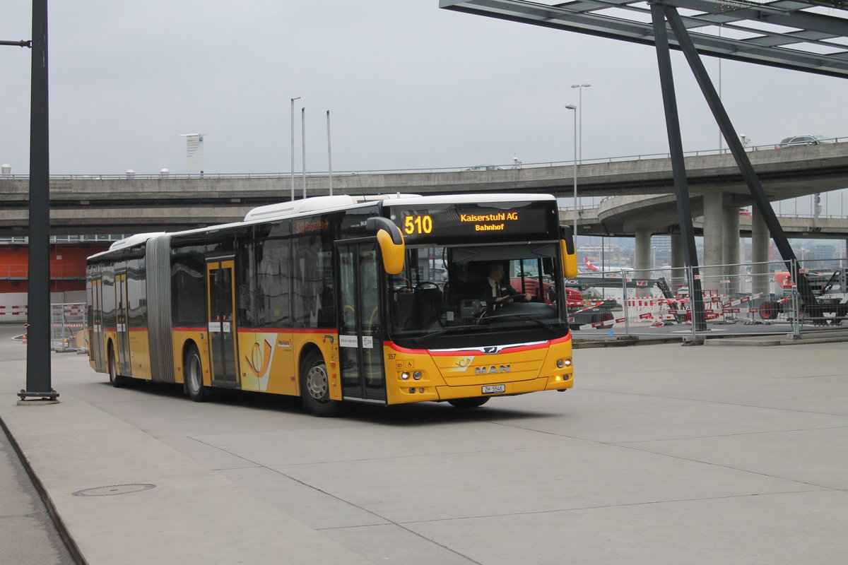 Postauto/PU ABSN Nr. 357 (MAN A23 Lion's City G) am 2.12.2019 beim Flughafen Zürich
