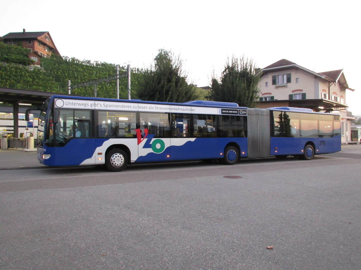 VZO - Mercedes Citaro Nr. 110 an der Haltestelle am Bahnhof Feldbach am 8.9.21. Leider wird dieser Bus und die 18 weiteren Citaro-Gelenkbusse von 2008, die letzten mit der alten VZO-Lackierung, wohl bis Ende Jahr ausgemustert werden.