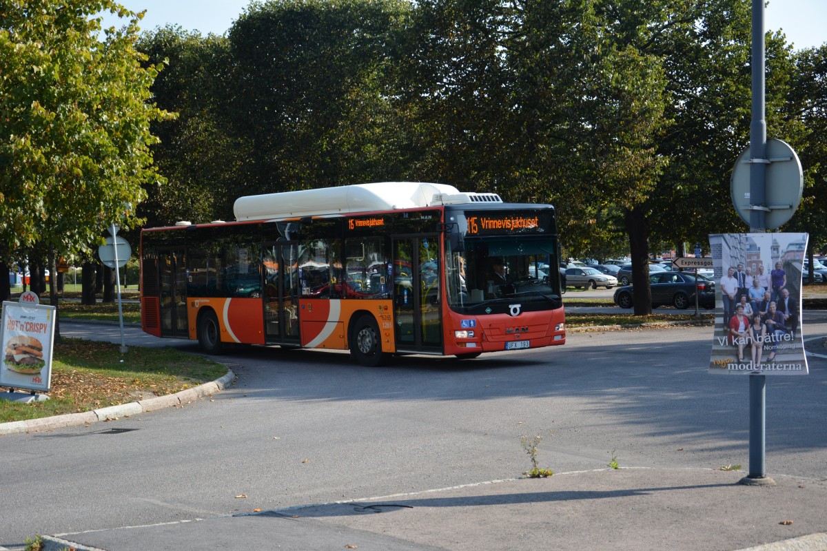 UFX 193 auf der Linie 115 am Bahnhof Norrköping am 19.09.2014. Aufgenommen wurde ein MAN Lion's City CNG.