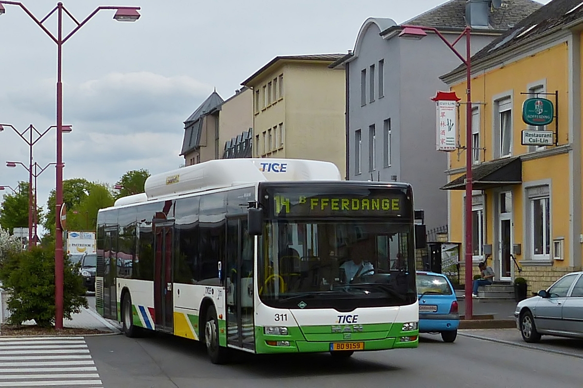 . BD 9159, MAN Lion's City vom Tice verlässt gerade die Haltestelle am Bahnhof um seine Strecke zu bediennen.  29.04.2015