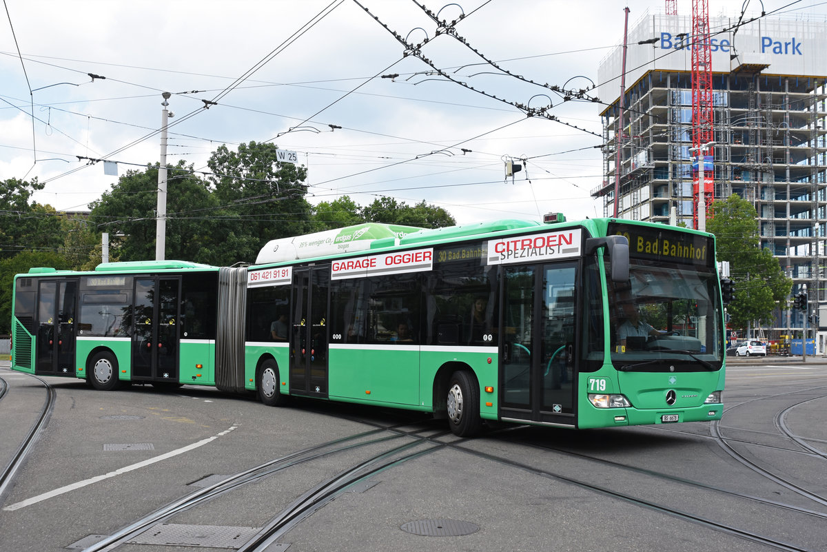 Mercedes Citaro 719, auf der Linie 30, fährt zur Endhaltestelle am Bahnhof SBB. Die Aufnahme stammt vom 24.06.2018.