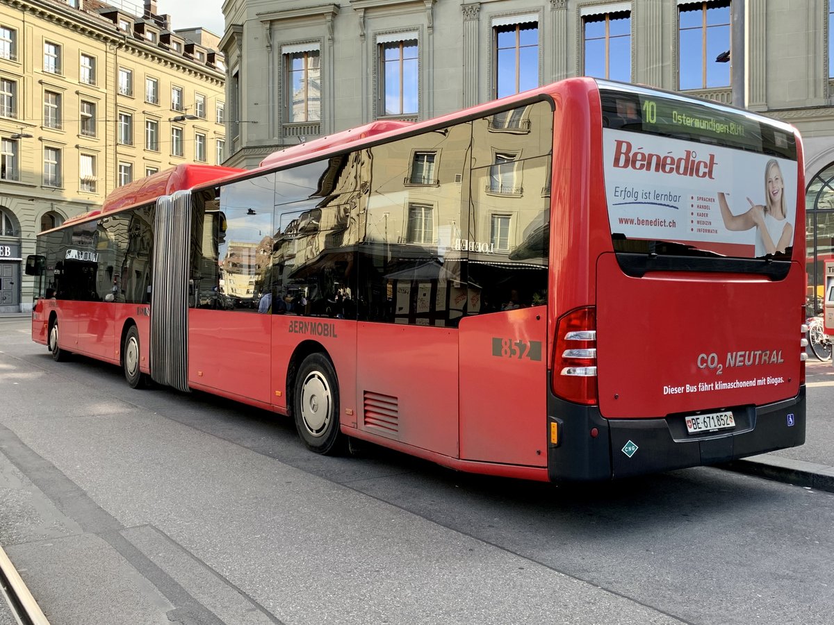 Heckansicht des Citaro Facelift CNG 852 von Bernmobil am 12.10.20 beim Bahnhof Bern.