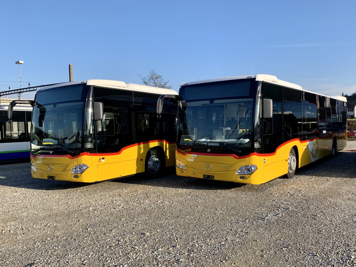 Zwei neue MB C2 hybrid '11558' für Wielandbus, Murten und '11495' für eine Regie im Kanton Aargau, am 23.11.20 bei Evobus Winterthur.
