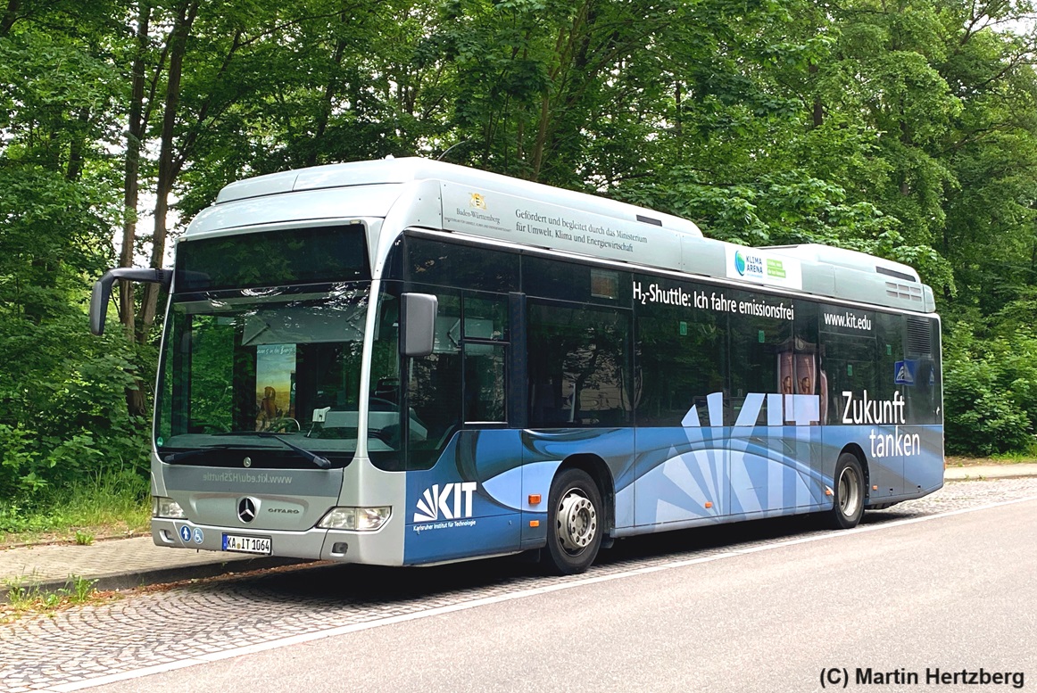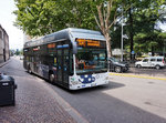 Ein Mercedes-Benz Citaro FuelCell der SASA unterwegs auf der Bozner Stadtbuslinie 10B (Ospedale/Krankenhaus - Stazione/Bahnhof - Ospedale/Krankenhaus), am 8.7.2016 nahe der Haltestelle Stazione/Bahnhof.
