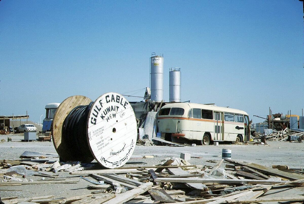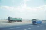 Kuwait 1982 Mercedes Linienbus und Schnellzugwagen im Transit für Irakische Staatsbahn