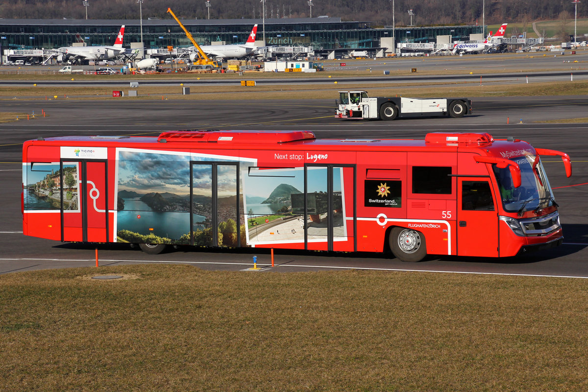 Cobus 3000, "55", Next Stop: Lugano, 27.Februar 2019, Flughafen Zürich , Switzerland.
