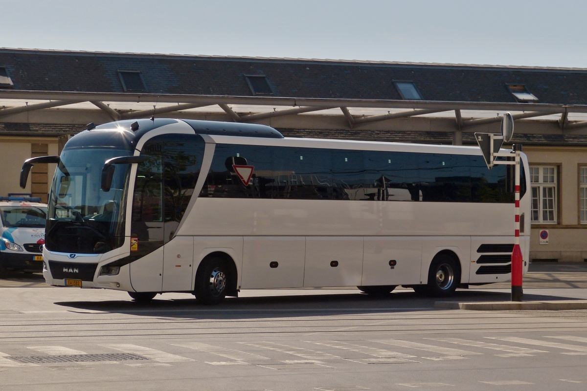 EW 1582, MAN Lion's Coach, von Emiele Weber, verlässt seine Haltestelle am Bahnhof von Luxemburg in Richtung Saarbrücken. 05.2022