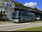Mercedes Travego in der Autobahn Raststätte Gruyere am  17.08.2025 ... Foto wurde mit einem Natel gemacht.
