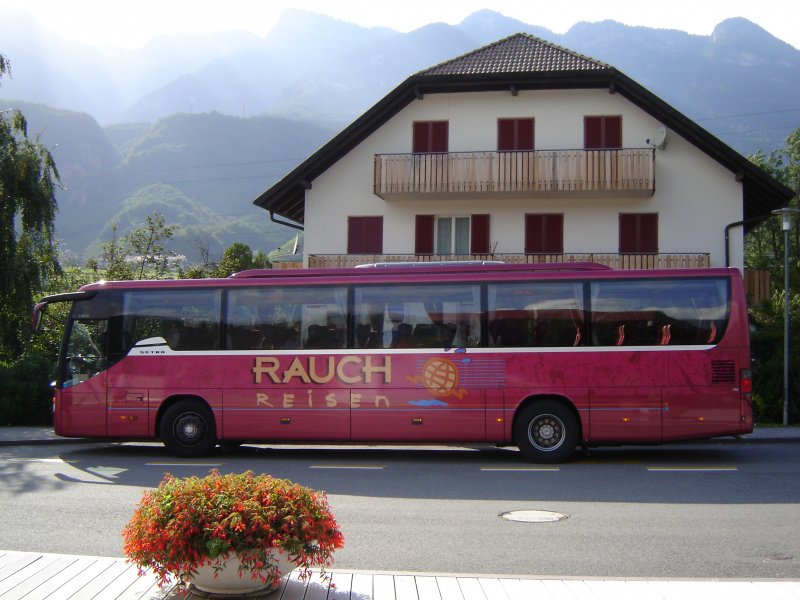 Setra S 415 GT des Südtiroler Reiseunternehmens Rauch Reisen, aufgenommen im Septmeber 2008 am Kalterer See. Rauch Reisen fährt hier Liniendienste im Auftrag des SAD (See- und Wanderbus Kaltern/Eppan).