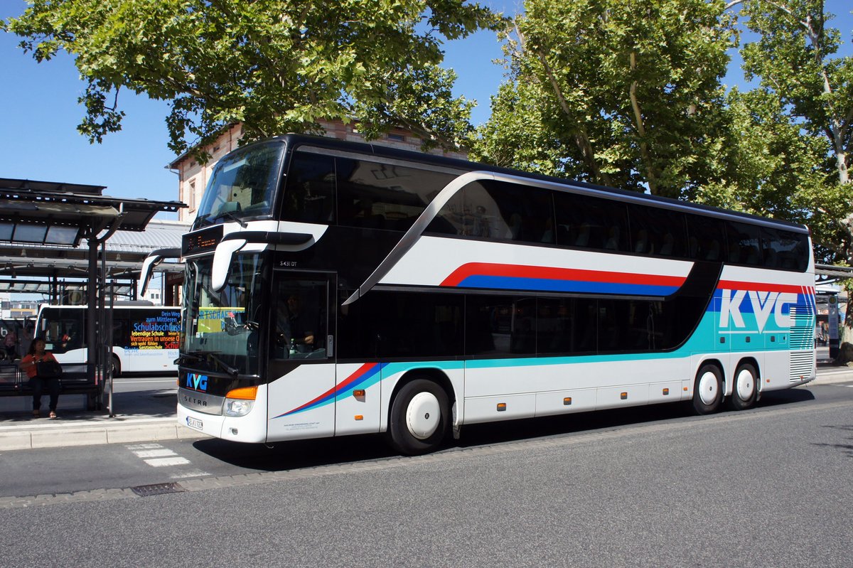 Bus Aschaffenburg / Verkehrsgemeinschaft am Bayerischen Untermain (VAB): Setra S 431 DT der Kahlgrund-Verkehrs-Gesellschaft mbH (KVG), eingesetzt im Regionalverkehr. Aufgenommen Anfang Juli 2018 am Hauptbahnhof in Aschaffenburg.