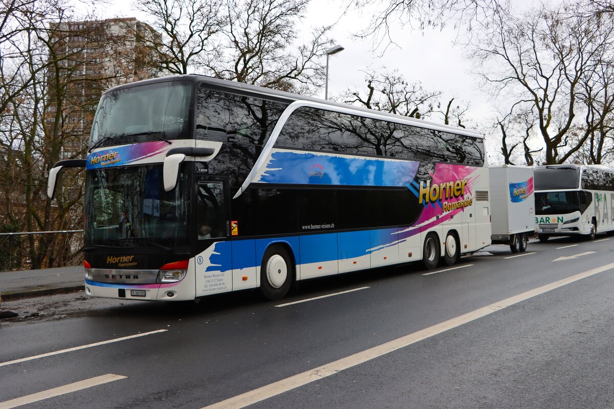 Setra S 431 DT von Postbus (BD-15777), vorbereitet für Schienenersatzverkehr in Innsbruck Hauptbahnhof/Frachtenbahnhof. Aufgenommen 22.7.2025.