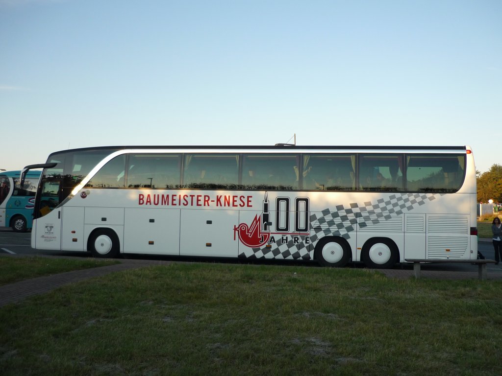 Ein Setra S 417 HDH Sonderedition Setra 60 Jahre. Macht Pause auf der Raststätte Bruchsal an der A 5.